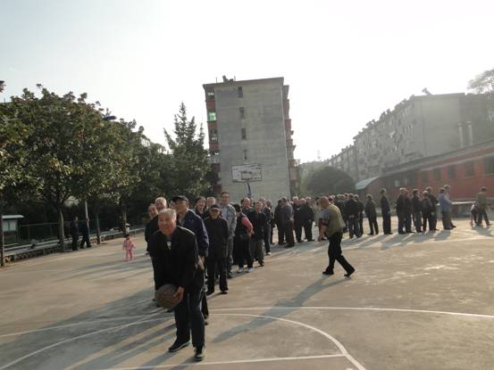 上午8點30分,院區老年同志就陸陸續續來到活動室,離退辦主任韓保明就活動意義、項目內容及安全事項等作了簡要動員。動員會結束后,活動在健步行中拉開帷幕,隊伍越走越大,人越來越多,一百多人的長龍顯得非常浩大,大家互相招呼、互相問候,互相祝福,顯得格外親切。隨后,又相繼進行了擲飛鏢、投沙包、皮球入門、定點投籃等室外活動項目,每個活動項目前都排起了長隊,有的拄著拐杖、有的在家人的陪伴下坐著輪椅來到了活動現場,享受著大家庭的溫暖。隨后繼續將在室內展開象棋和撲克雙扣比賽活動。