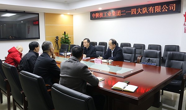 3月2日上午,中陜核集團公司黨委副書記馮凱帶領黨委工作部部長金衛平一行蒞臨二一四大隊有限公司調研指導工作。公司領導及相關部門、單位負責人參加會議。