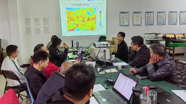 王義忠對(duì)黃泥坪重點(diǎn)區(qū)域的物探極化率平面成果給予了高度的認(rèn)可,并結(jié)合自身以往的工作經(jīng)驗(yàn)對(duì)黃泥坪地區(qū)的地質(zhì)背景和礦體的賦存情況做了詳細(xì)交流,為后續(xù)工作開展和綜合解釋提供了極大的幫助。