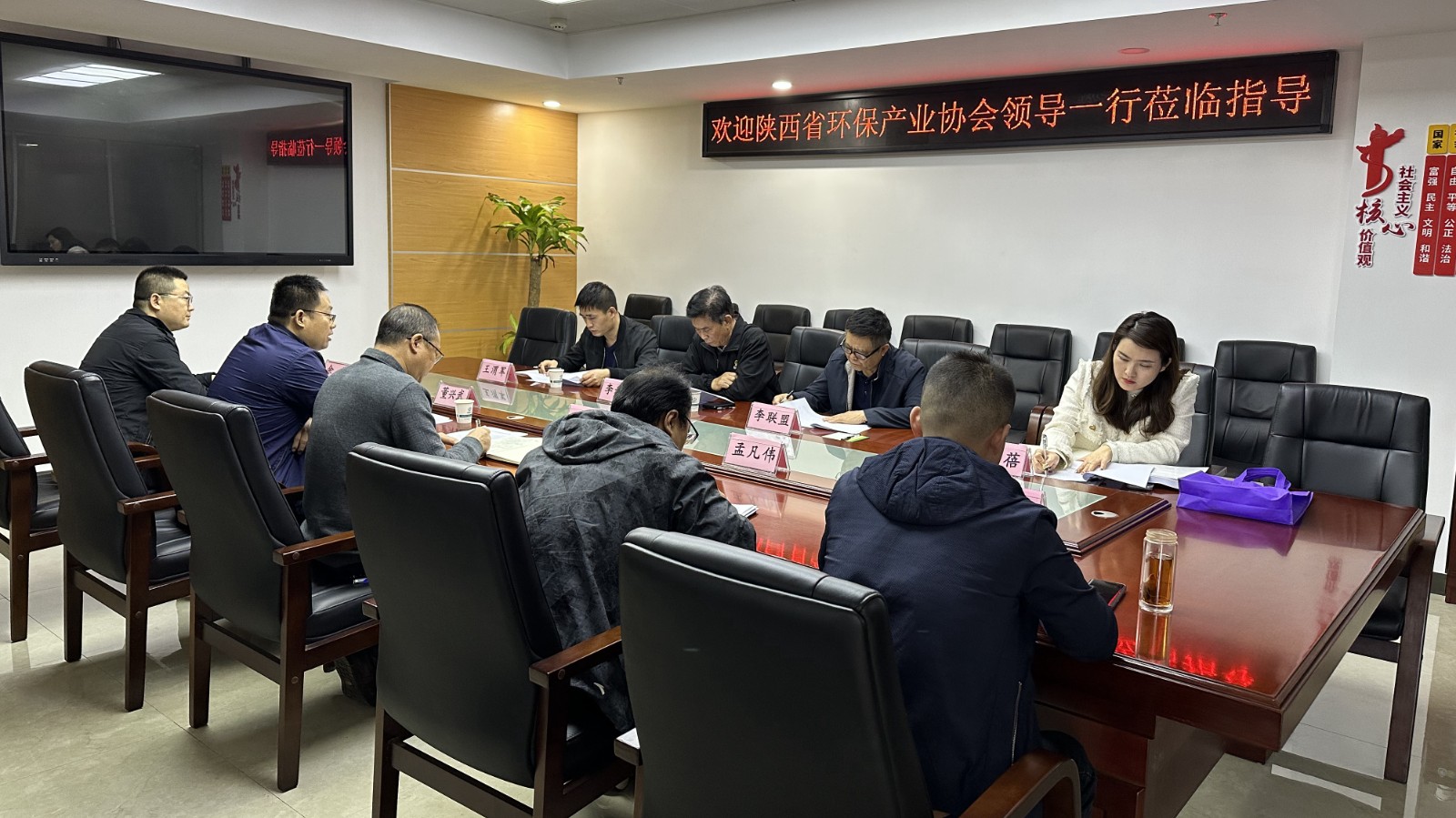 陜西省環(huán)保協(xié)會高級顧問李聯(lián)盟、副秘書長王渭軍、會員部主任樊蓓,公司經(jīng)發(fā)部、行政部、水工環(huán)院負(fù)責(zé)人參加座談。