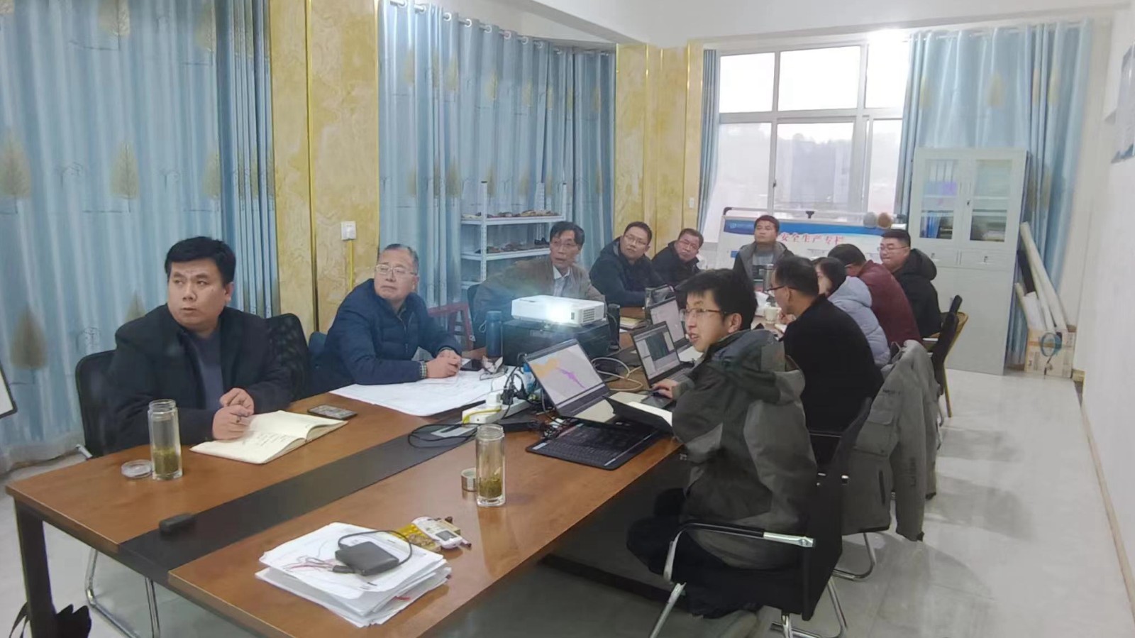 鄧盛波對近期及下一步工作進行部署,并提出四點要求:一是加快施工進度,春節(jié)過后完成目前正在施工的兩個鉆孔的分析測試結(jié)果及相應(yīng)的原始資料整理工作;二是加快室內(nèi)資料整理,2月底完成詳查設(shè)計編寫及評審工作;三是優(yōu)化詳查設(shè)計,總體部署、分步實施、合理部署工作,協(xié)同作戰(zhàn),完成既定目標任務(wù),為可否探轉(zhuǎn)采提供科學(xué)依據(jù);四是野外施工要規(guī)范作業(yè)、正確佩戴防護用品,識別危險源并做好防護措施,確保各項工作安全進行。