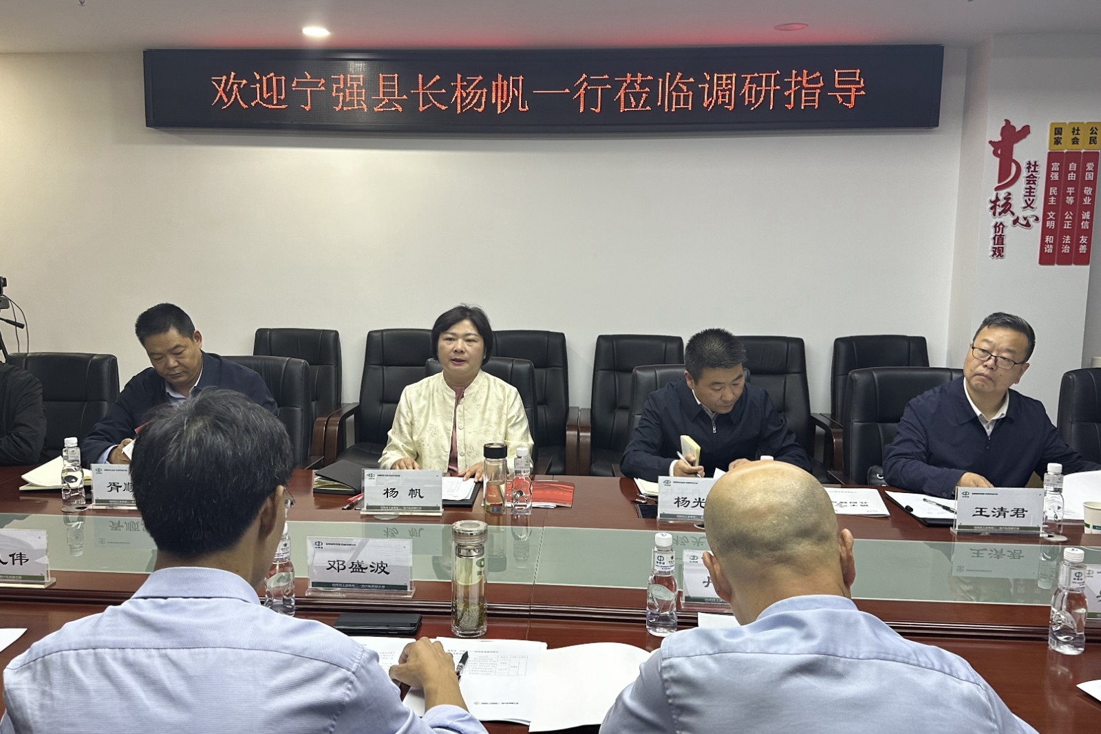 10月16日下午,寧強縣委副書記、政府黨組書記、縣長楊帆一行蒞臨公司進行調研座談,公司黨委書記、董事長鄧盛波主持會議。