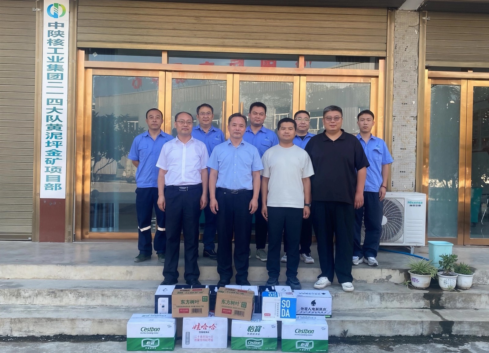 近日,陜西地區持續高溫,野外作業面臨嚴峻“烤”驗,中陜核集團黨委副書記馮凱、宣傳部部長張昆峰一行先后深入二一四隊寧強縣黃泥坪地區金礦詳查項目組和西鄉縣蔡家梁地區金礦詳查項目組開展“野外送清涼”慰問活動,為在高溫下奮戰的一線職工送去防暑降溫物資和集團公司的深切關懷。