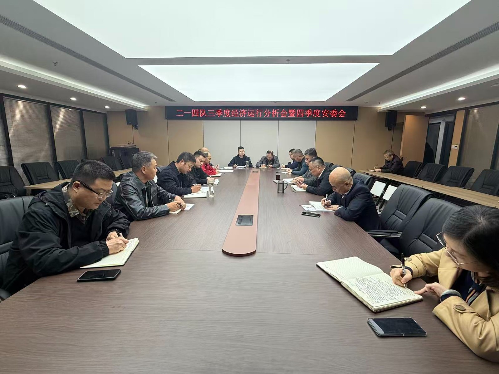 2025年10月21日下午,中陜核二一四隊組織召開2025年第三季度經濟運行分析會,全面總結回顧前三季度經濟運行整體情況,深入分析當前面臨的形勢與挑戰,系統部署第四季度各項重點任務。會議由公司黨委委員、總經理王朋主持。公司黨委書記、董事長付星出席會議并作講話。