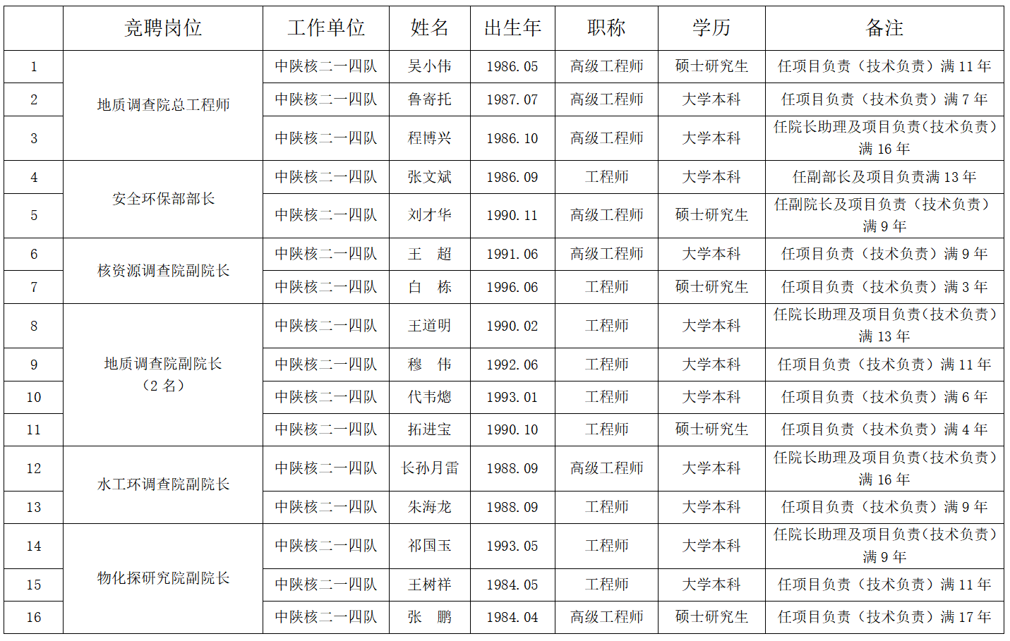 根據《中陜核工業集團二一四大隊有限公司關于公開競聘中層管理崗位的實施方案》有關要求,現對資格審查通過的報名人員予以公示: