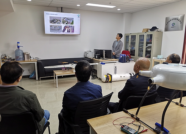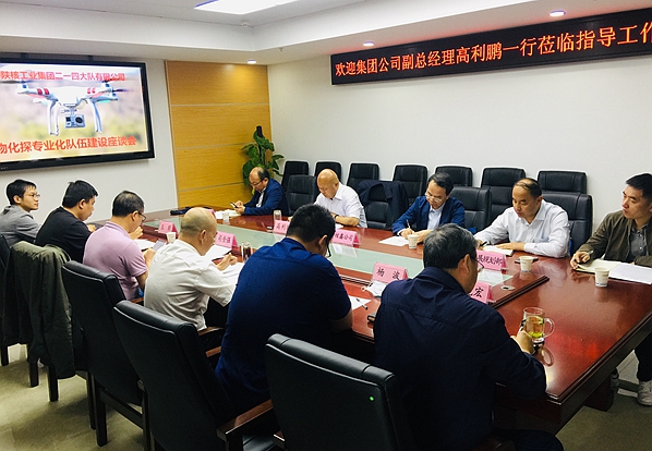 高利鵬一行首先來到公司物化探院無人機航空物探研發中心,仔細觀看了研發的各型無人機平臺及搭載的物探設備,認真聽取了無人機航空物探研發中心首席專家沈銘成博士就航空測量、航空放射性、航空磁測、航空瞬變電磁等系統的研發應用情況的匯報。二一四大隊副總經理冉軍林就物化探專業隊伍建設現狀、“十三五”發展思路及下一步專業化隊伍走“融合發展”,打造“產業物探”道路的設想進行了詳細匯報。