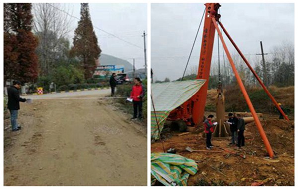 陜西省地?zé)豳Y源豐富,資源量巨大,淺層地?zé)崮芊植挤秶鷱V泛,陜南山間盆地主要以地下水地源熱泵形式開發(fā)利用。為加快推進(jìn)地?zé)崮芮鍧嵐釕?yīng)用,根據(jù)陜西省住建廳《關(guān)于發(fā)展地?zé)崮芄岬膶?shí)施意見》精神,水工環(huán)調(diào)查院積極搶抓市場先機(jī),與陜西中勉投資有限公司就查明九昱漢水溫泉旅游度假區(qū)附近地層結(jié)構(gòu),含水層富水性及回灌能力,為水源熱泵的供水井設(shè)計提供依據(jù)達(dá)成約定,在定軍山鎮(zhèn)郭家灣村開展地層勘查、大口徑試驗(yàn)井施工及相關(guān)水文地質(zhì)試驗(yàn)工作。