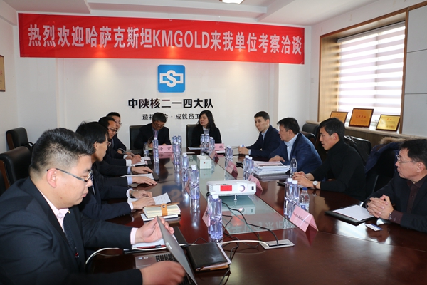 交流座談會在熱烈友好的氣氛下進行。崔昊巋董事長首先致歡迎詞,鄧盛波董事長和哈薩克斯坦駐華投資參贊Suitangali kinzhakulov分別進行了講話,哈薩克斯坦KM Gold公司董事長Mirgali kunayev介紹了哈薩克斯坦國在礦產開發、地質勘查等方面的政策要求以及KM Gold公司的情況。公司總經理助理楊波介紹了中陜核工業集團二一四大隊有限公司情況、技術力量、儀器設備及近年來取得的地質勘查成果。