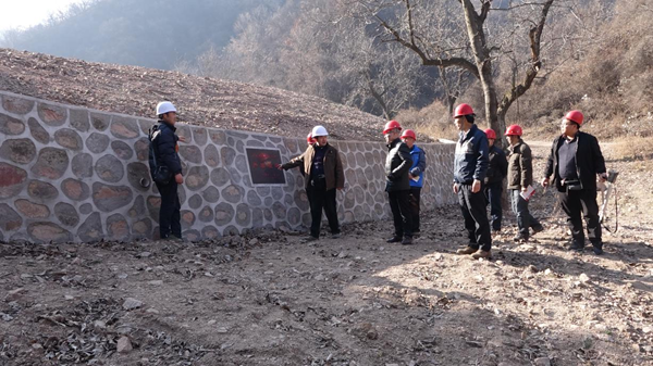 鄧盛波一行到達項目組駐地后,首先到各個治理點上對實施的護坡擋墻、排水溝、覆土等治理工程進行查看、驗收,現場發現問題,提出了整改意見。在交工驗收會上,驗收小組成員認真聽取了項目負責人?;⒘謱υ擁椖恐卫砬闆r的簡要匯報,并對施工資料進行了仔細核查。