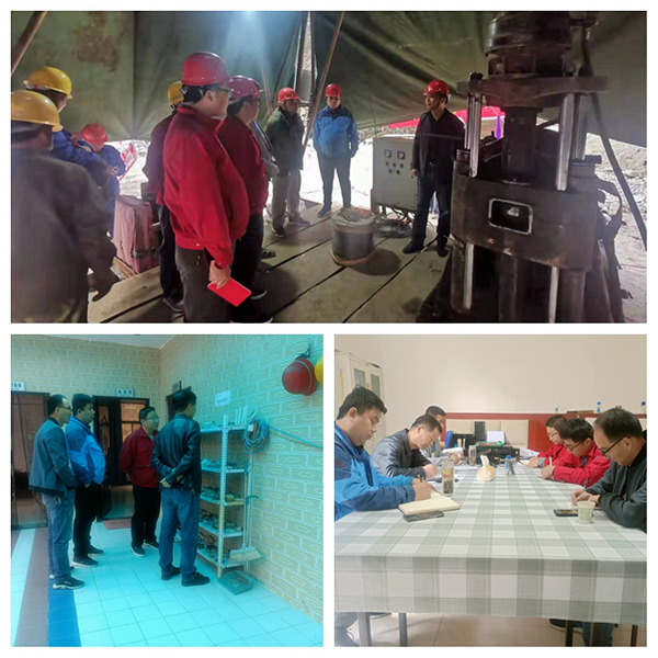 在鉆孔開鉆現場,公司領導對施工現場存在的安全隱患、施工質量及生態環境作了進一步強調,要求項目以綠色勘查為理念,注重加強安全防范意識,爭取取得重大找礦成果。在項目駐地,公司領導首先參觀了項目部標本展示,聽取了項目負責項目進展情況的匯報。楊昭對項目取得的成果給予高度肯定,他強調:一是在項目實施過程中應加強生態環境的保護,始終堅持貫徹綠色勘查理念;二是加強黨建工作的引領,在生產經營中真正實現黨建與生產經營相結合;三是加強自身廉政紀律,不觸碰黨章、黨紀、黨規的紅線;四是要發揮項目黨小組戰斗堡壘作用,增強項目凝聚力,提升員工的事業心、榮譽感。