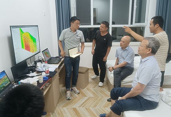 冉軍林一行深入拜城縣蘇杭河煤礦隱蔽致災(zāi)項目作業(yè)現(xiàn)場,實地查看了野外作業(yè)設(shè)備、人員操作、作業(yè)流程等情況,并與技術(shù)人員進行了交流研討,對瞬變電磁接收線圈進行了優(yōu)化改進,加強了接收信號質(zhì)量
