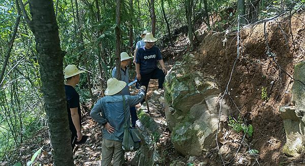 在野外施工現場,專家組認真檢查探槽、剝土等工程施工質量及綠色勘查情況,現場就礦體賦存狀態、控礦構造、礦化蝕變及下一步需要進一步查明的成礦因素等理論技術問題進行了深入討論和精心指導
