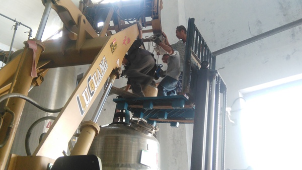 在這種持續(xù)氣溫高達(dá)到38度酷暑的環(huán)境下,物業(yè)公司經(jīng)理曹連會帶領(lǐng)員工利用天然谷公司休高溫假期間,到車間安裝攪拌器。